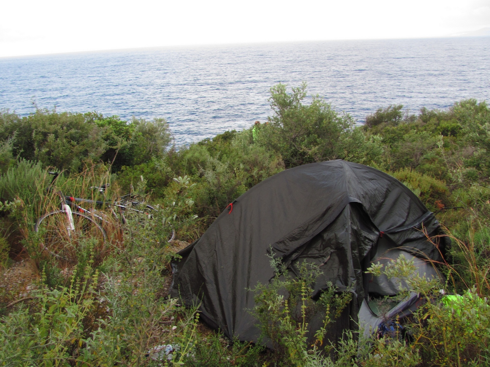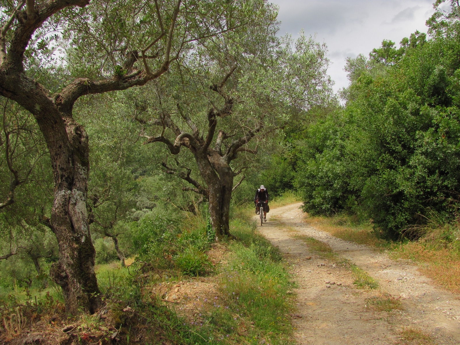 "Длинный день по асфальту. Ночевка в оливковом саду. Дождь.