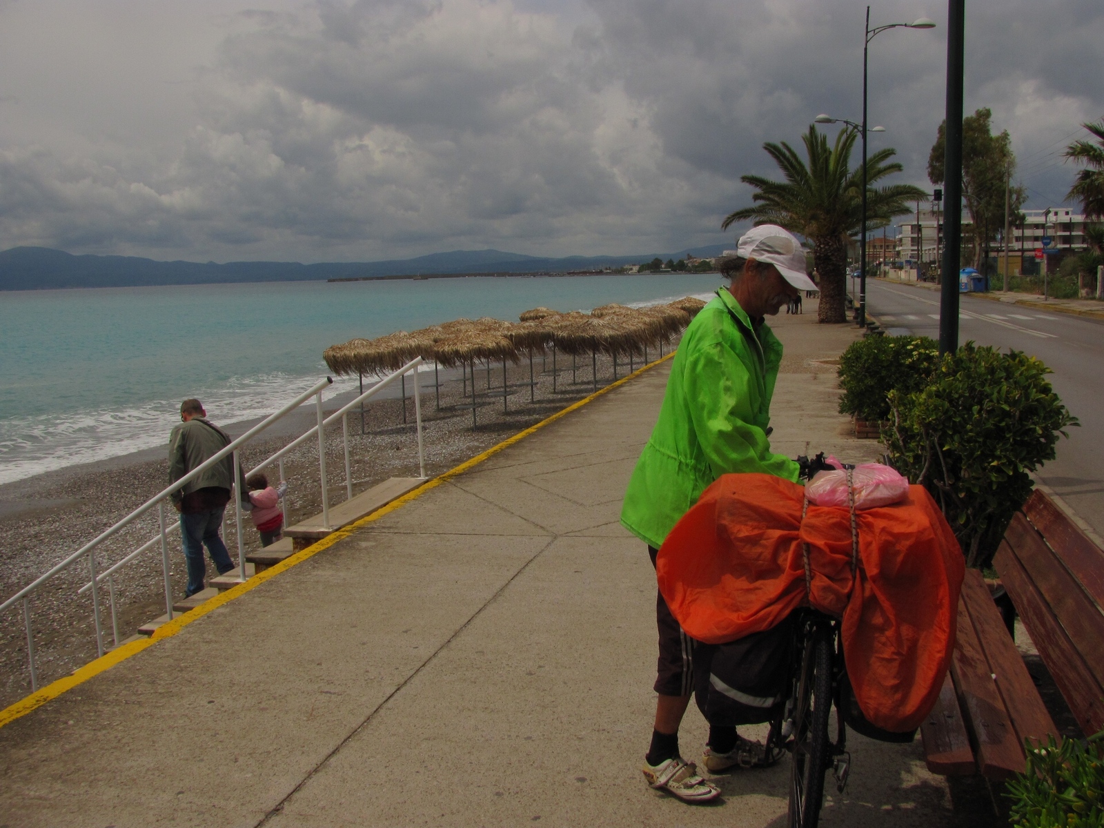 36 км - Kalamata. велодорожка по побережью почти вдоль всего города. Дождь, иногда стихает, иногда проливной.
