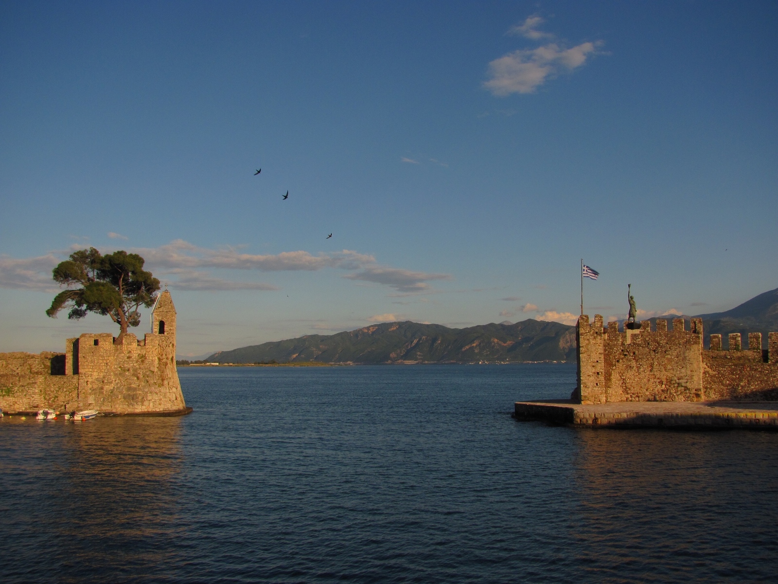 "Пиргос. Пляж. Автобус до Патры. Церковь. Мост. Гостиница в Хилиаби. Порт."