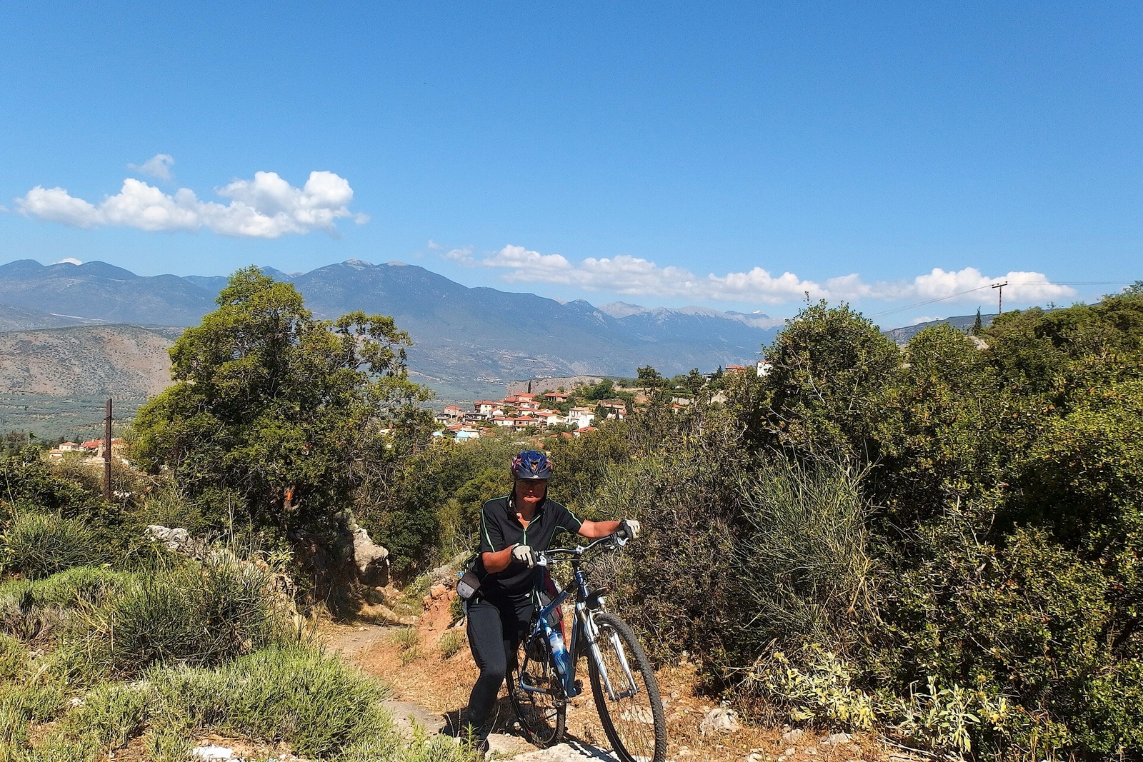 6 км (10-00) - сворачиваем с трассы. Поднимаемся по тропе (рис. 160 - 163). Симпатичный городок и красивые виды, но велосипеды можно было и не таскать, а просто подняться по трассе. Выходим на трассу и едем по серпантину