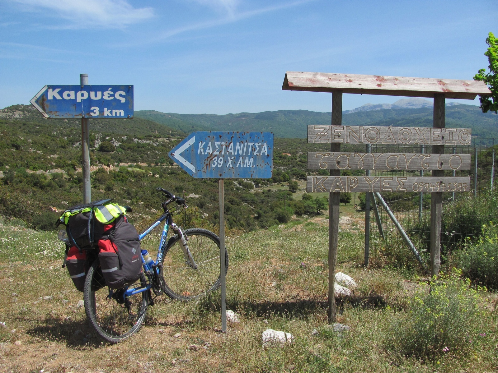 67 км (40 км) (20-30) - Chiliadou, останавливаемся на ночлег в гостинице. Хотя гостиница была забронирована на следующий день (мы приехали раньше), ради нас гостиницу открыли и мы были ее единственными постояльцами - еще не сезон.