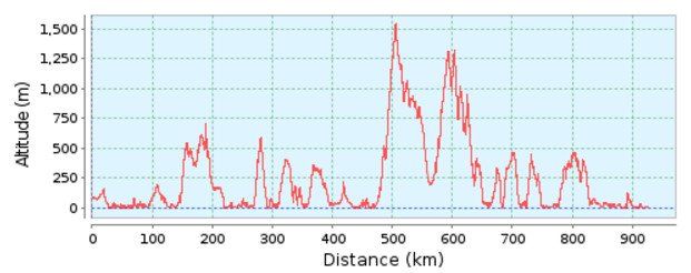 Асфальт – 1010 км Грунтовые дороги – 125 км Набор высоты - 17320 м