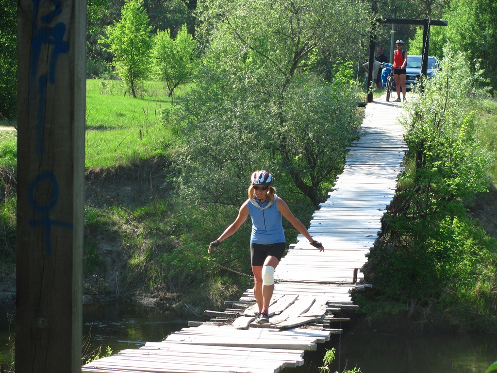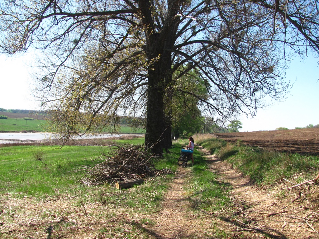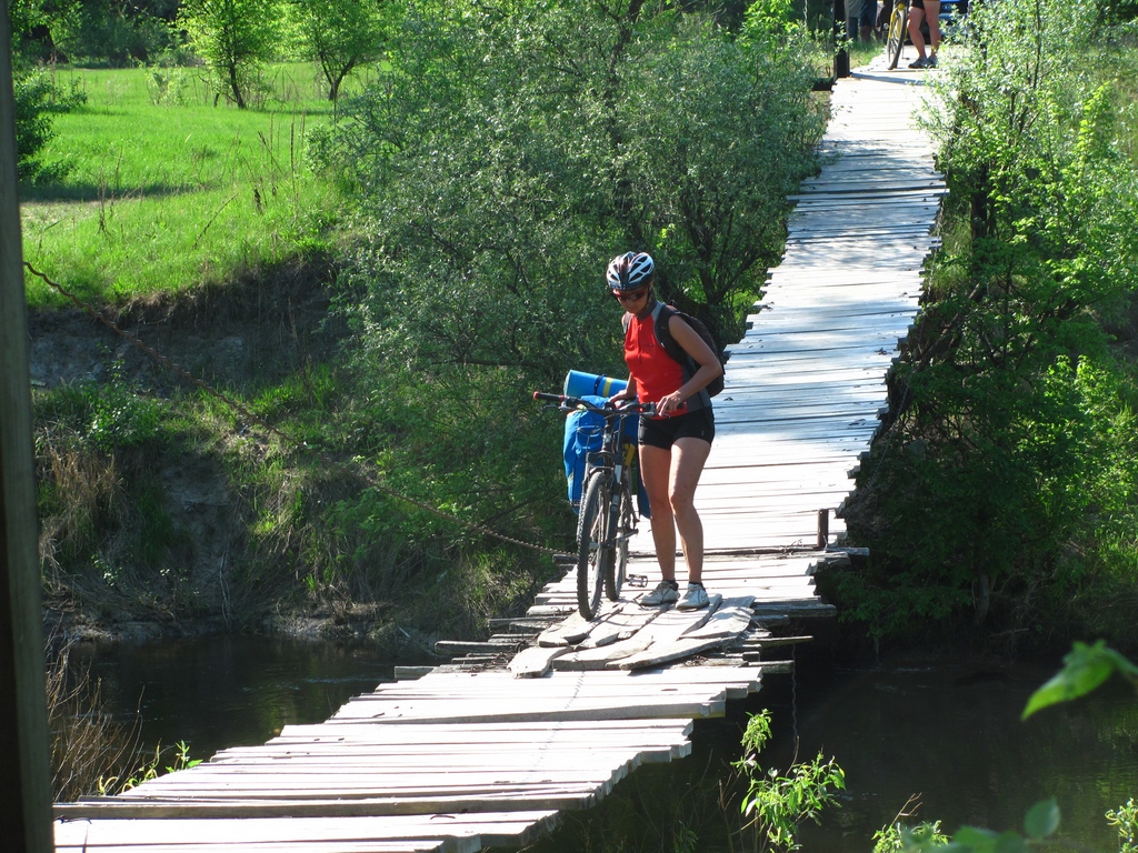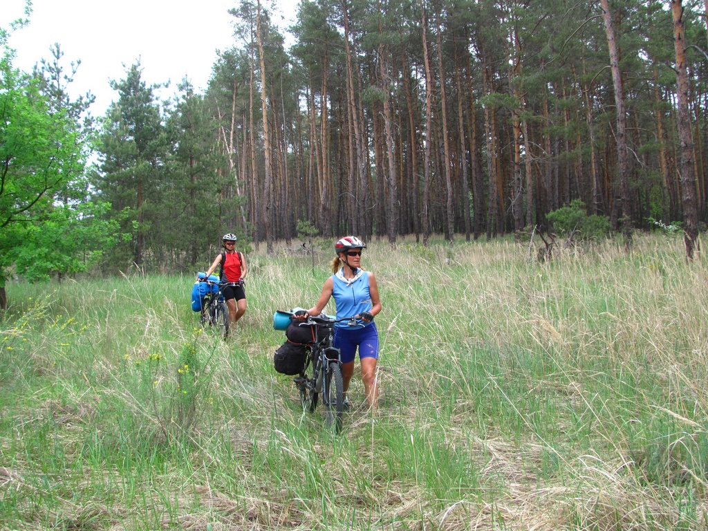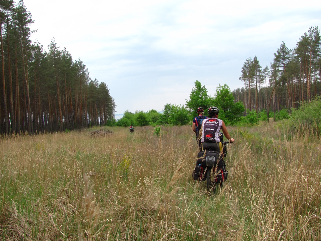 10-40 (21,6 км) - Украинка. За селом снова выезжаем к Ворскле и дальше стараемся ехать вдоль реки, особо не удаляясь от берега. Дорога грунтовка, песчаная грунтовка. 2 км - бездорожье. Иногда приходится спешиваться. За 4 км до Котельвы, песок становится более глубоким.