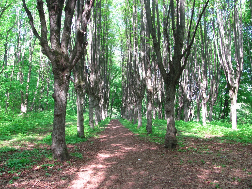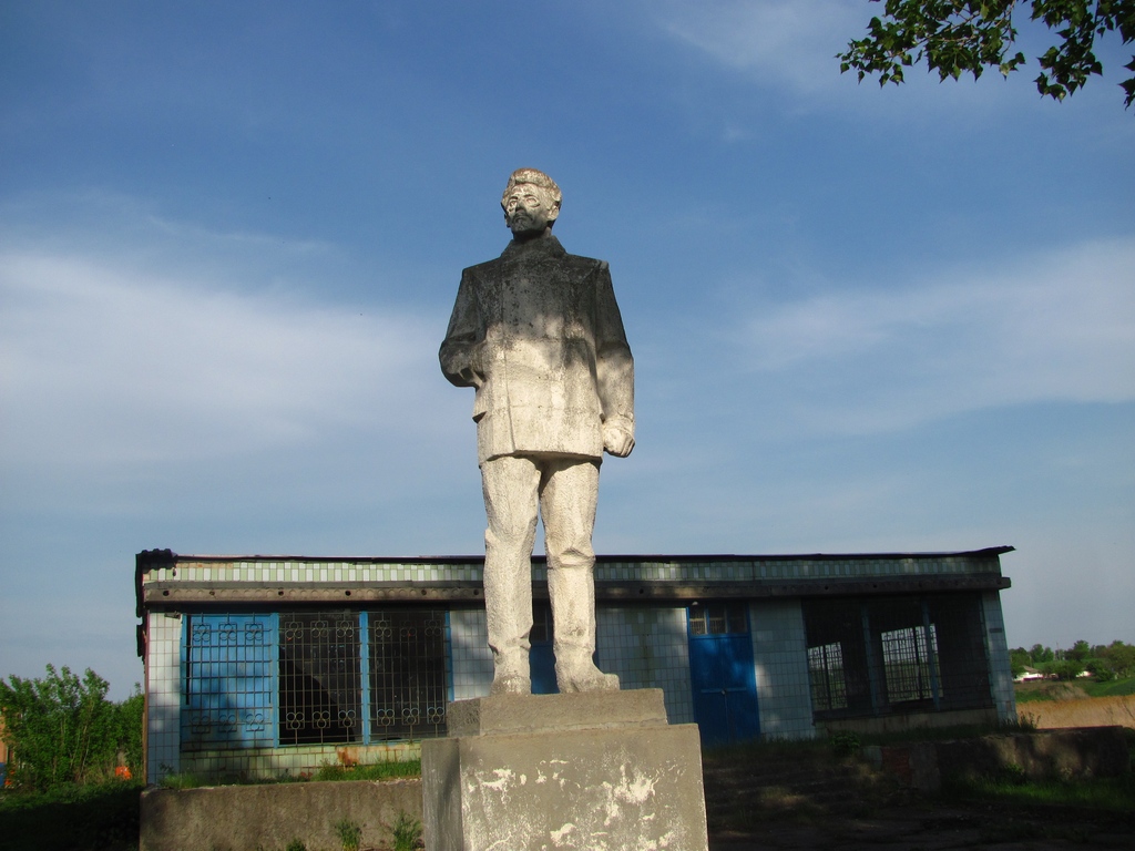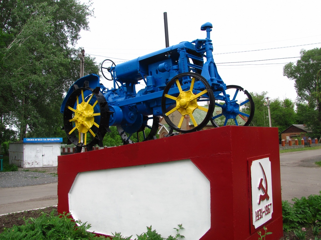 Кобелячек. На въезде стоит памятник, а кому - загадка? А из Кобелячек идет асфальтовая дорога с "зелеными туннелями"