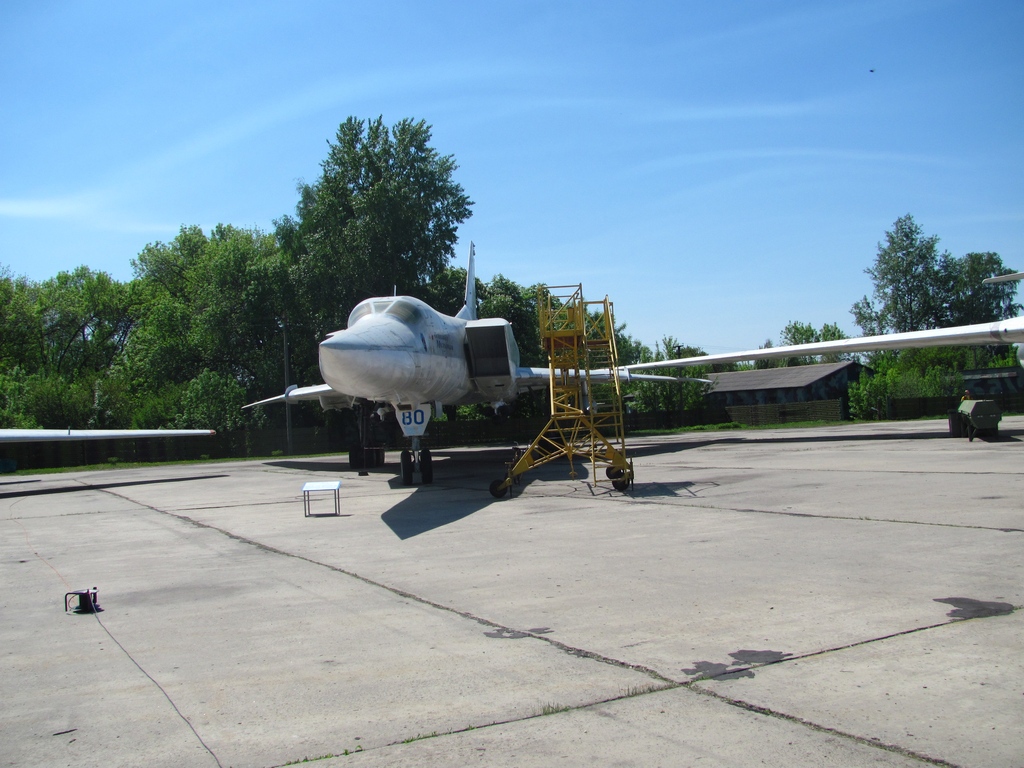10-00 (10,8 км) - подъезжаем к воротам музея авиации (с заднего входа). Дорога и асфальт, и грунт, и даже тропинка. И еще - взлетная полоса аэродрома. Дальше, у нас экскурсия, осматриваем самолеты дальней авиации. Проводит экскурсию - главный инженер эскадрильи