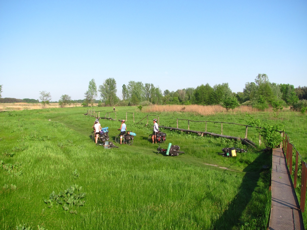 18-30 (81,0 км) - Великие Будища. Сьезжаем с асфальта и спускаемся в Чернечий яр. Пытаемся проехать к реке. Но все дороги затоплены. Тем временем. начинает темнеть и приходится останавливаться на ночлег на окраине Чернечего яра, возле заброшенного дома.