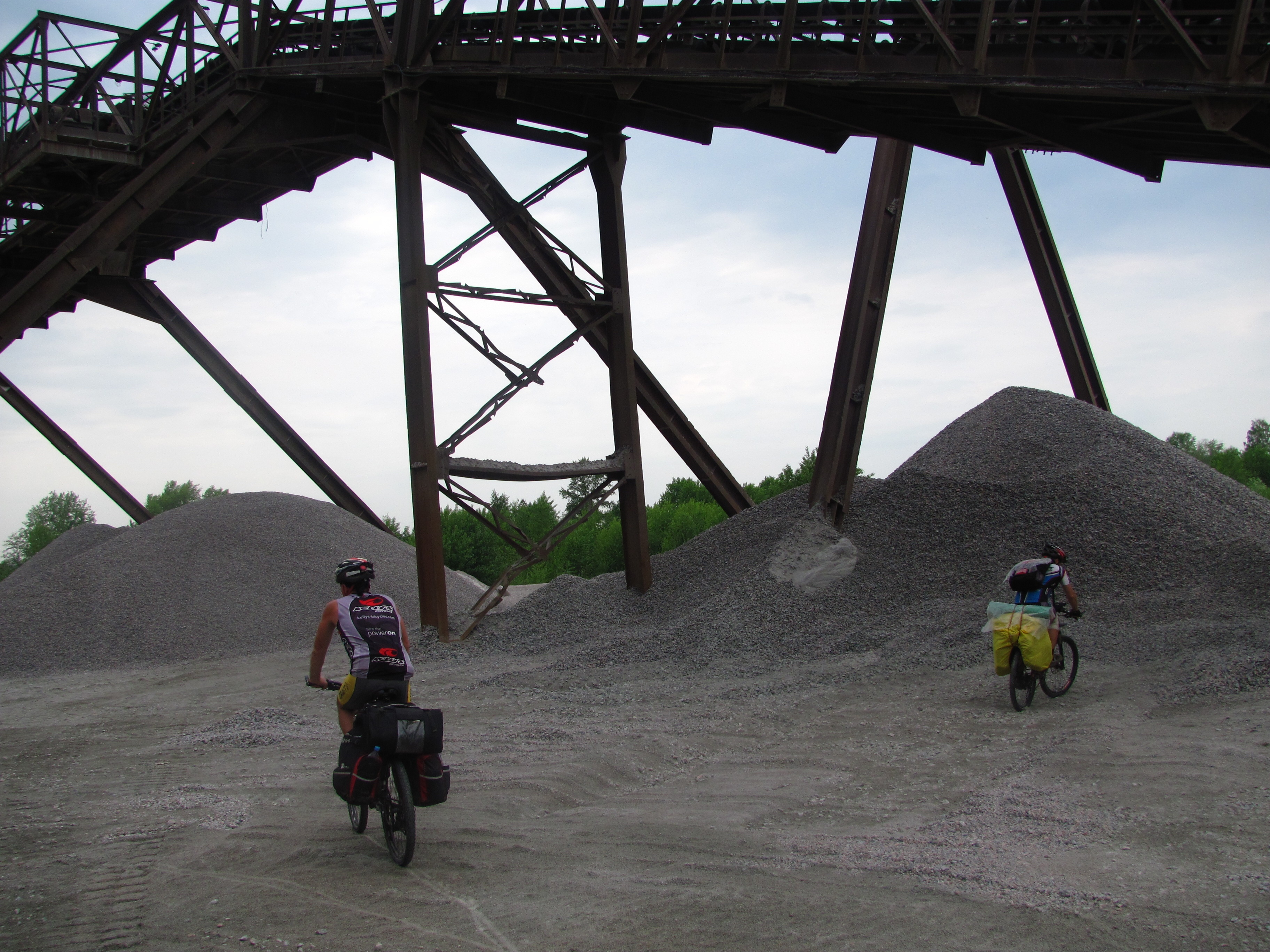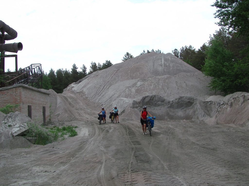 Едем вдоль Днепра. И, после небольшого подъема, оказываемся в карьере.