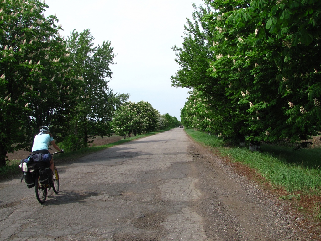 Выезжаем на асфальт и в 9-24 (6,8 км) мы в Чорбовке. за Чорбовкой очень крунозернистый асфальт, почти грейдер.