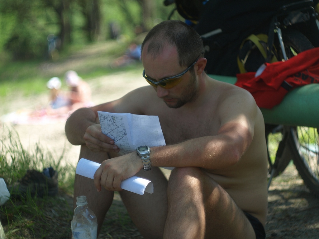13-00 (37,8 км) - Котельва. За Котельвой на берегу Ворсклы останавливаемся на обед. Вода теплая и обед немного затягивается. И только штурман работает.