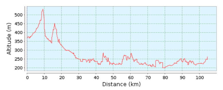 Дистанция за день – 106 км, из них: асфальт - 96,5 км, грунтовые и лесные дороги – 9,5км
